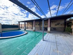 En su parte trasera pequeña piscina donde poder disfrutar de ella en los meses de calor.